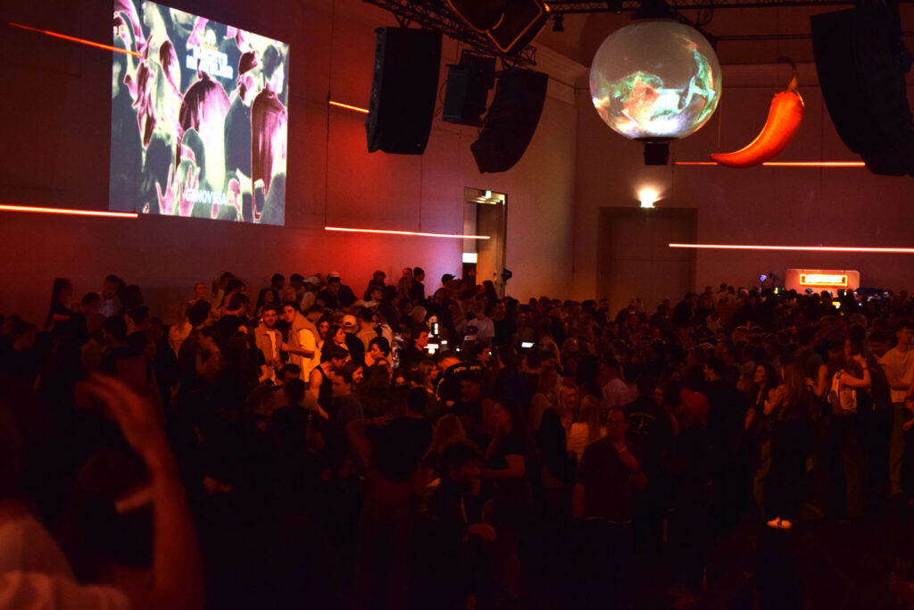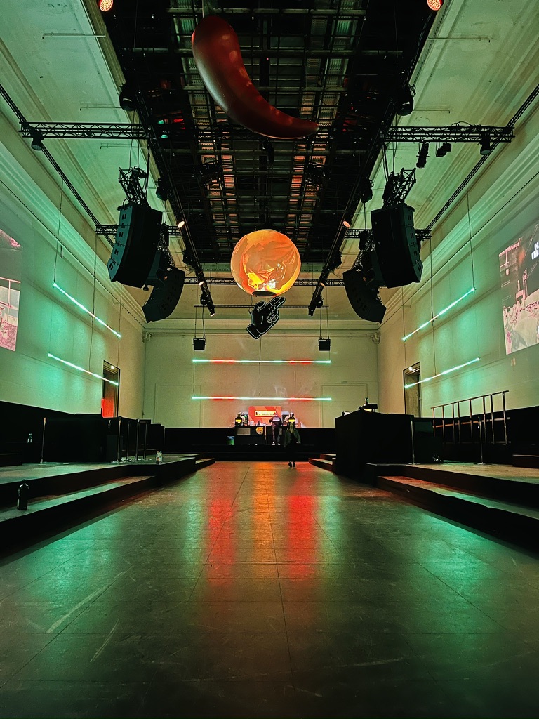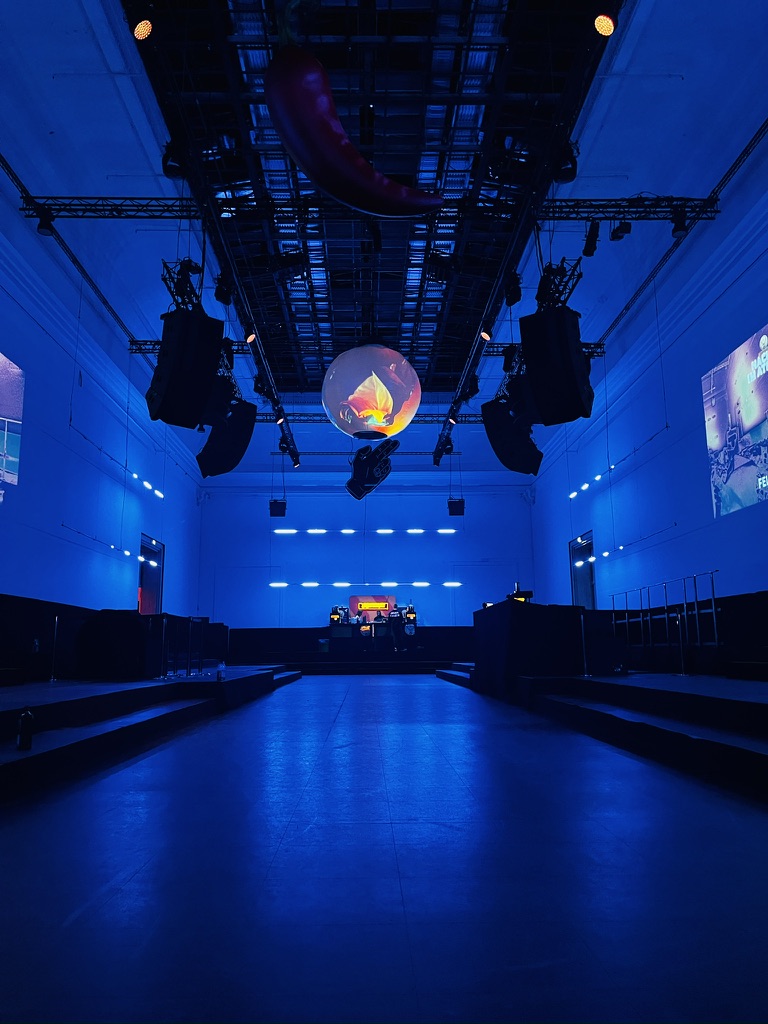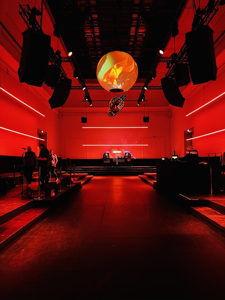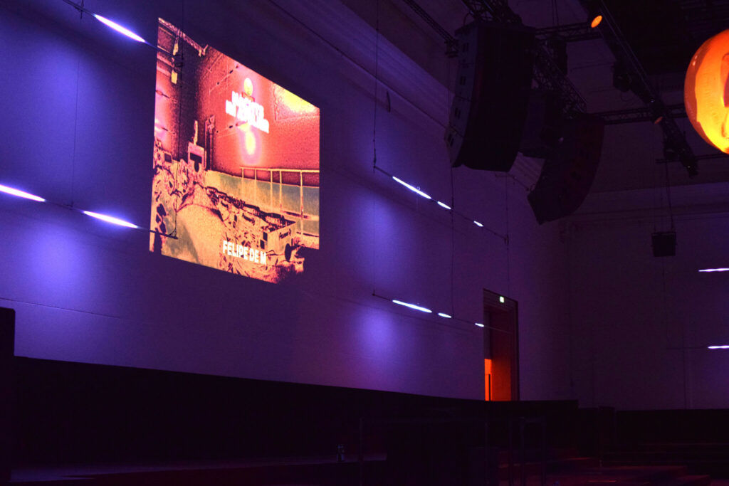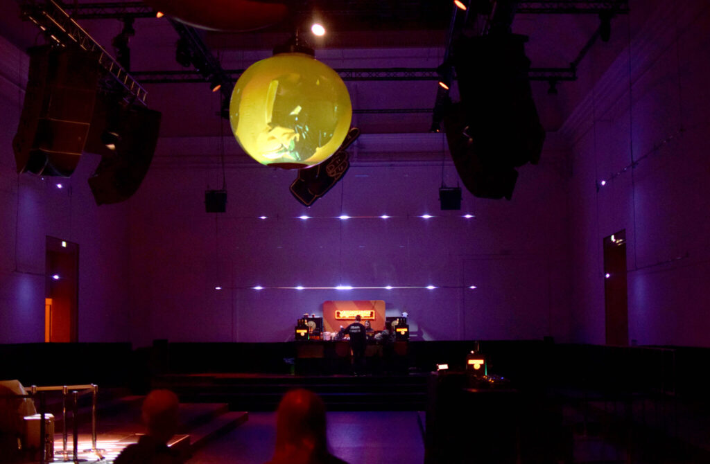 ● Ausstattung mit Ton-, Projektions-, Video- und Lichttechnik, Setbau